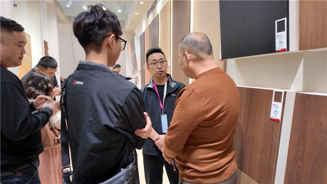 针对特定地域环境需求的荣耀系列饰面板,以其多层板基材带来的卓越稳定性(尤其适合南方潮湿环境)和30款持久靓丽的花色,获得了众多关注实用性能与耐用品质的客户高度认可。同时展出的 PET系列、至臻系列饰面板及多样化的地板产品,共同构成了Karrisen凯立森®完整的产品生态,满足了从家居到商业、从墙面到地面的全方位材质应用需求。