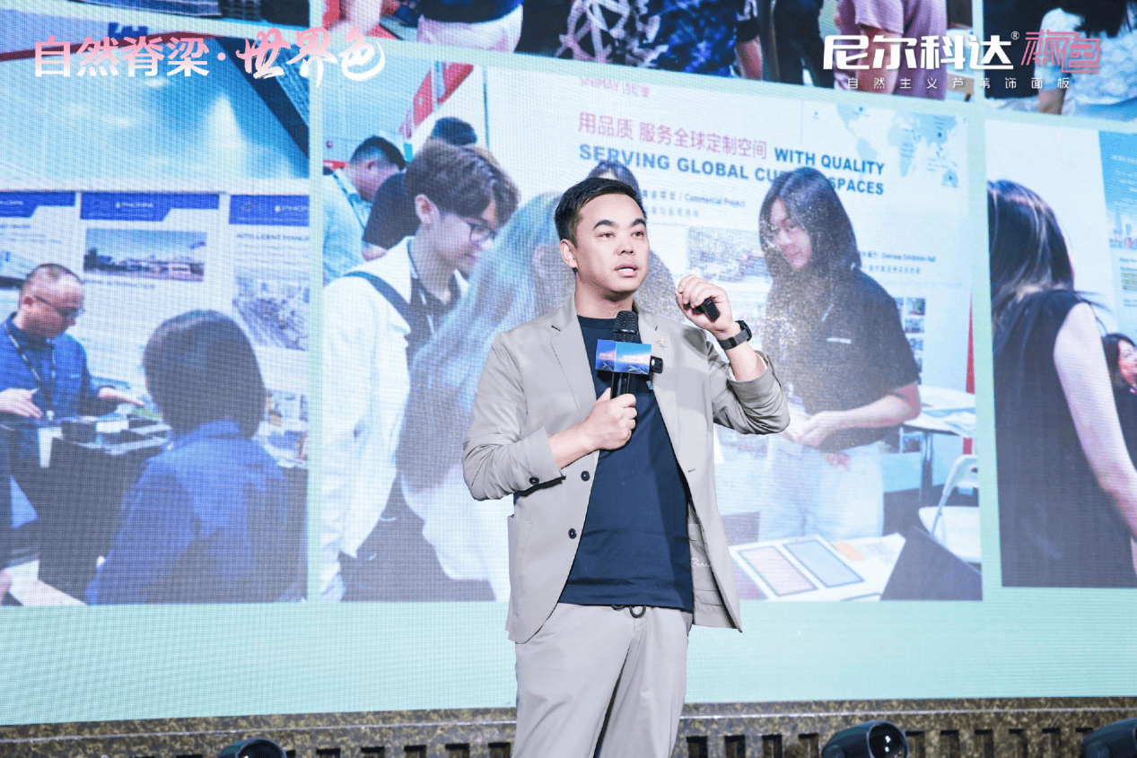 随后,尼尔科达集团董事长隋明东的演讲,则深刻阐释了品牌从“基材革新者”到“自然主义居住解决方案提供者”的战略跃迁。面对行业内卷加剧、增长乏力的现状,隋明东指出,比拼基础功能与低价已走入死胡同,未来的竞争力在于能否提供“高颜值加自然而然的身心居住状态”。基于此,尼尔科达首次系统提出了“自然主义居住哲学”这一核心品牌理念。