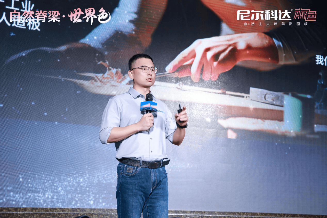 隋明东宣布,尼尔科达已不再满足于只提供一块优质的板材,而是致力于构建一个完整的价值交付体系。品牌重磅发布了源于自然色彩与肌理的本色D(单色)、M(木纹)、P(配色)三大系列共66款饰面板。更为关键的是,尼尔科达构建了从高端芦苇基材、自然美学搭配、完整空间方案到终端营销赋能的四层价值交付体系。这意味着,合作伙伴获得的将不仅是产品,更是一套可落地、可复制、能解决消费者从材料顾虑到空间感受全流程问题的系统解决方案。此举标志着尼尔科达完成了从单一材料供应商向系统解决方案提供者的关键转型,为行业突破内卷提供了新的发展范式。