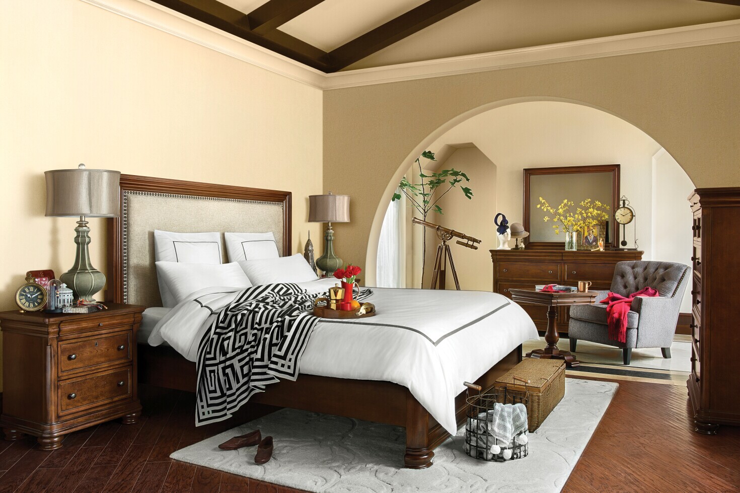 现场展示的Hedley系列是汲取法国新旧风格之精髓而形成独具特色的精致系列,设计灵感来源于19世纪盛行的路易•菲利普风格,代表了法式家具由繁入简的风格转变。浅色的皮质软包搭配浓郁的樱桃实木,凝重厚实而简洁大气又不失舒适感,与许多人所向往的艺术质感生活不谋而合。