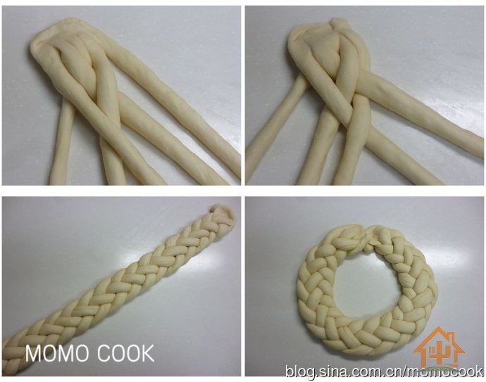 8 将辫好的面包辫围成圆形.