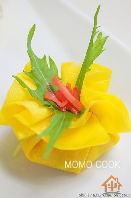 另需装饰用青菜叶若干,红姜丝若干,系薄蛋烧用的青菜梗若干