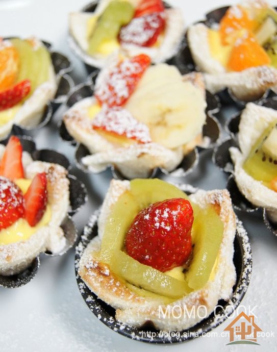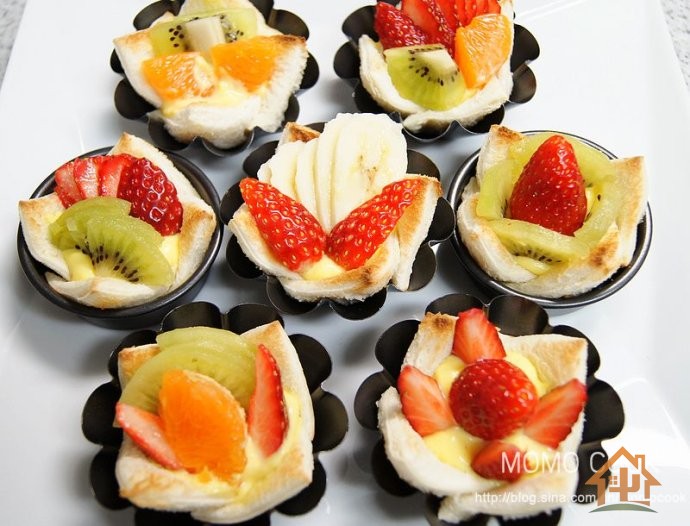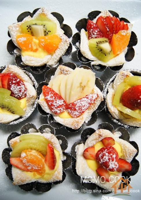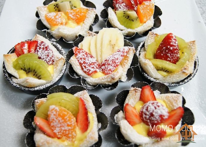 16 上面按照喜欢放些水果。如果有时间和精力,可以再水果上面刷些明胶,这样看起来更漂亮。我这次做的没有刷。其实不刷也蛮漂亮的!