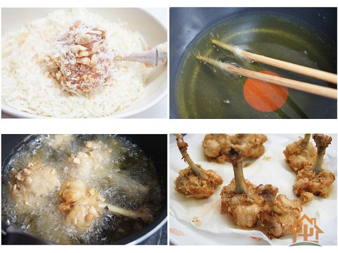 12 至鸡肉完全熟透,外表呈金黄色即可。放在吸油的纸上让其吸去多余油分。