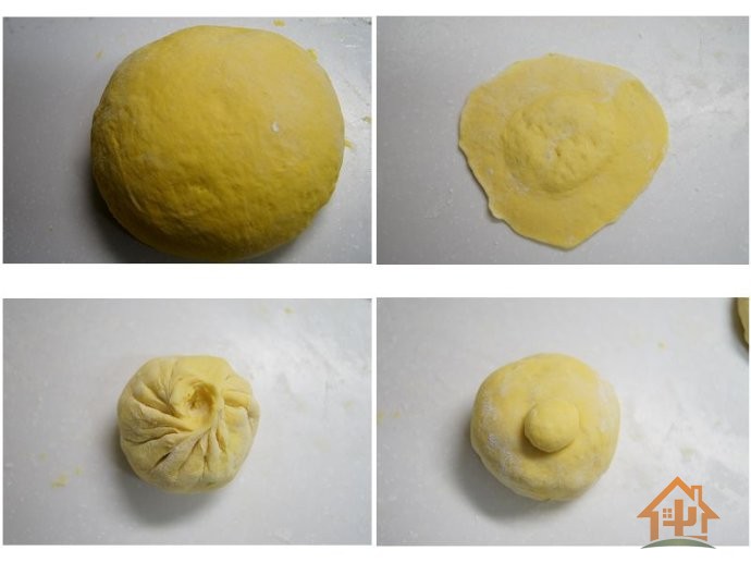 4 捏口朝下。上面用小面团做个鼻子安上。