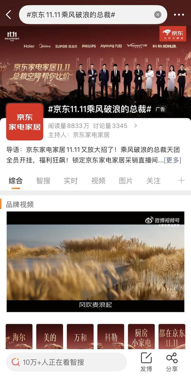 微博平台同样成为重要传播阵地:海尔官微与京东官微创意联动,通过发起"总裁心愿征集"等互动话题,吸引大量用户参与讨论,#京东11.11乘风破浪的总裁#话题登上微博热搜TOP4,形成了持续发酵的全网声浪。