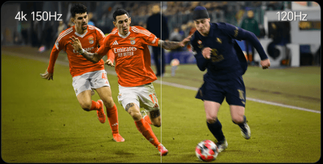 清晰度有了,观赛流畅度、色彩真实度还要取决于芯片能力。百吋海信小墨E5搭载信芯AI画质芯片,堪称赛事画面的“黄金调校师”。针对足球高速动态场景智能优化,彻底解决球员跑动拖影、画面卡顿的问题,搭配4k 150Hz高刷,攻防转换丝滑顺畅。同时信芯AI画质芯片还能精准还原赛场色彩,绿茵场的翠绿、球队球衣的鲜亮配色高度保真,让每一个观赛细节都贴近现场。