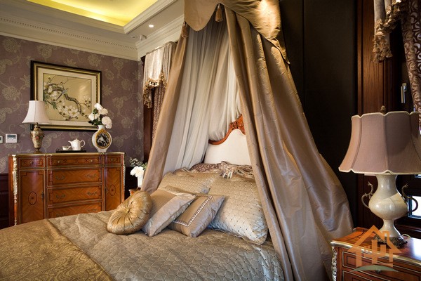 整个二层是女主人和女儿生活的空间。主人房的灰粉色调,柔美而不失品位,洛可可时期对女性文化的推崇在这里得到了充分的展现。家具上的拼花、手绘及雕刻再一次重现了文艺复兴鼎盛时期对家具制作的苛求。三层空间则全部为男主人所有,作为一位严谨、成功的金融家,其对细节的苛求,也在这里得到了完美的诠释。