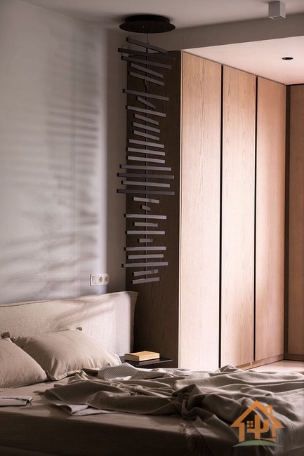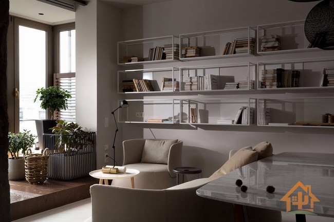 KENZO是由高田贤三在法国创立的品牌,结合了东方文化的沉稳意境、拉丁民族的热情活泼,大胆创新的融合了缤纷色彩与花朵,创造出活泼明亮、优雅独特的作品。Olga Akulova 期望设计出一间能反映kenzo风格细节的公寓。他们消除非承重墙,使用推拉门和工业混凝土来分离区域。两个人的松露木早餐由Akulova设计。客厅兼作客房,透过玻璃可俯瞰到花园、城市、河流。沙发后面,他们用Poliform的大理石桌子作为控制台,可兼作办公桌和餐桌。墙壁的金属架由Akulova设计,在客厅里创建一个视觉的焦点,同时还提供存储空间。