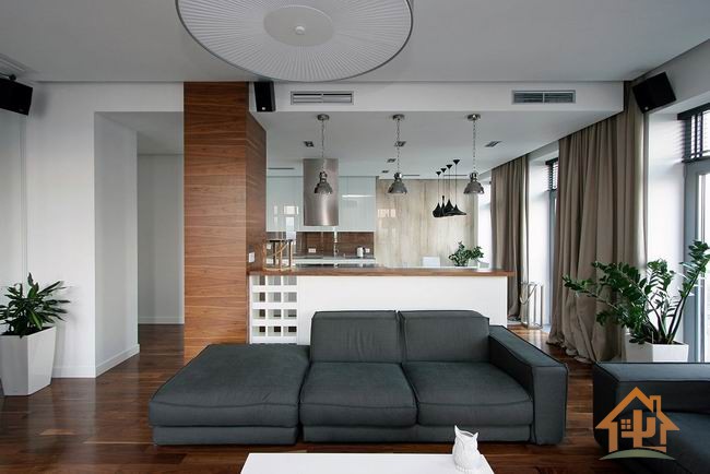 这座公寓位于乌克兰,屋主是对年轻的夫妇带着孩子生活,通过吧台巧妙划分不同使用区域,动线非常流畅,收纳隐于无形的设计带来整个整洁的家居环境,空间使用一点不浪费,卧室设计师没有采用厚重的墙体或者传统的门来进行隔断,而是采用门帘隔断,不占位又使用方便,拉开门帘,尽享一览无余的浪漫奢华感,整体营造中规中矩的严谨感。