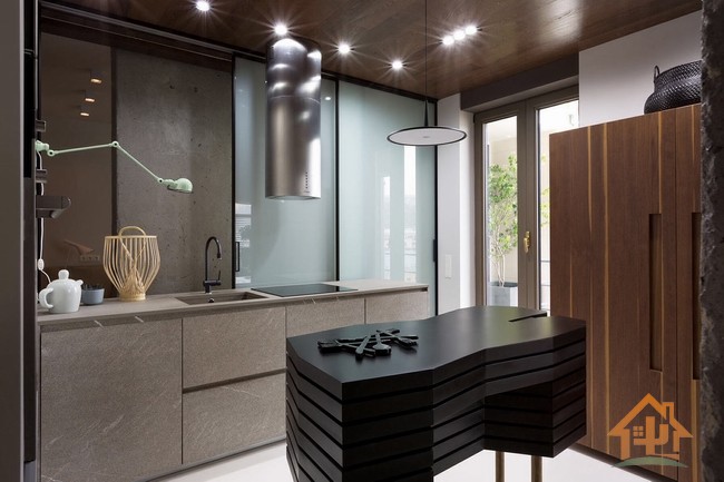 KENZO是由高田贤三在法国创立的品牌,结合了东方文化的沉稳意境、拉丁民族的热情活泼,大胆创新的融合了缤纷色彩与花朵,创造出活泼明亮、优雅独特的作品。Olga Akulova 期望设计出一间能反映kenzo风格细节的公寓。他们消除非承重墙,使用推拉门和工业混凝土来分离区域。两个人的松露木早餐由Akulova设计。客厅兼作客房,透过玻璃可俯瞰到花园、城市、河流。沙发后面,他们用Poliform的大理石桌子作为控制台,可兼作办公桌和餐桌。墙壁的金属架由Akulova设计,在客厅里创建一个视觉的焦点,同时还提供存储空间。